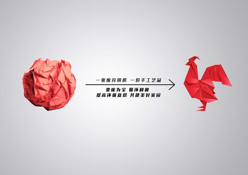 发布时间:2022-05-25 点击量:237作品用“废弃纸团”和“手工艺品”形成了鲜明对比,生活中工作和学习浪费了很多的纸张,处理方式就是一扔了之,变成垃圾,但是我们可以换一种思维,把他们做成一份工艺品,让它们换一种方式存在,以此来提示我们大家生活中很多垃圾都是可以这么做的,提倡环保,建设我们美丽家园。